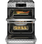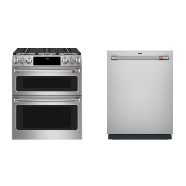 Café 30吋六口雙層爐連烤 瓦斯型+Café 雙對流熱旋風烘乾 86cm 全嵌式洗碗機 銀